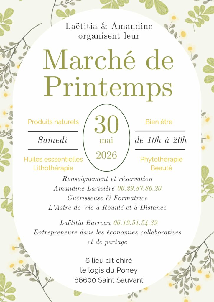 - 11 & 12 avril : Salon et Marché du Bien-être du corps & de l'Esprit à Rouillé 86 (salle des fêtes)